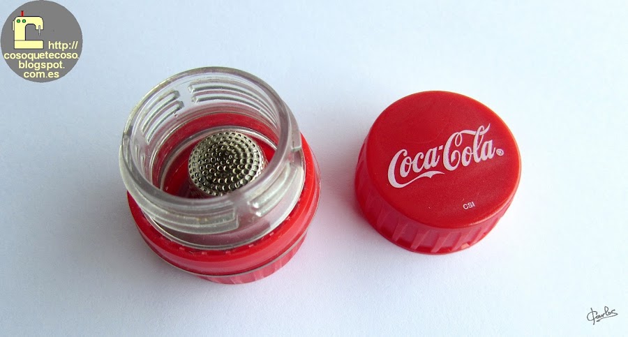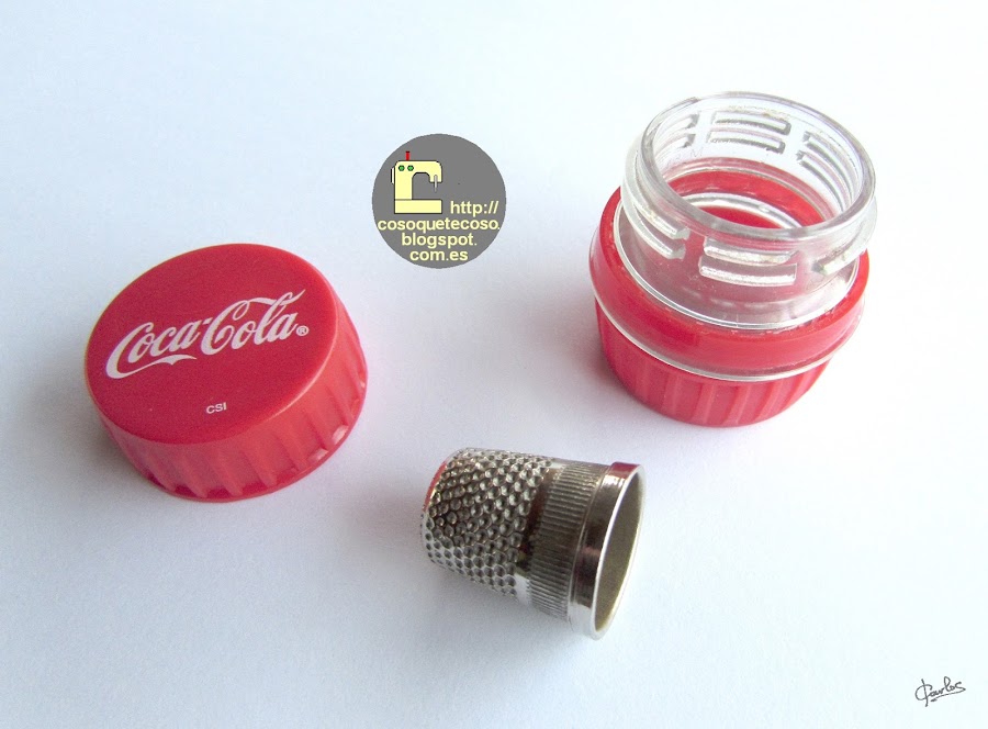 También me ha dicho Beatriz que cuando no está segura si lleva dedal, moviendo el costurero lo sabe por el ruido que hace en el guarda dedal de tapones de refresco.