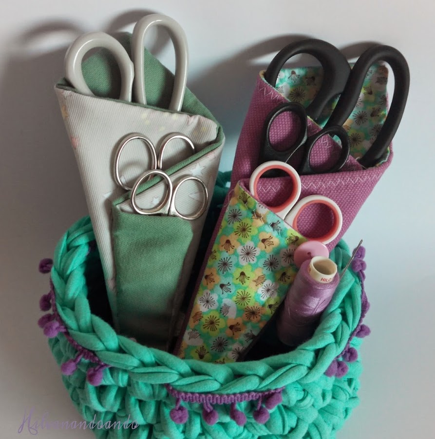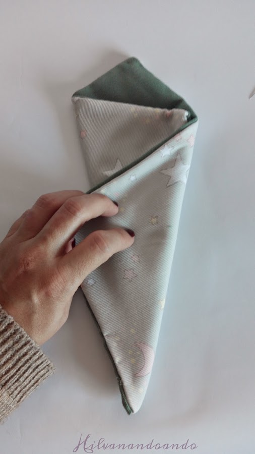 Pasamos a montar el guarda tijeras; dobla la tela como vas viendo en las fotos.