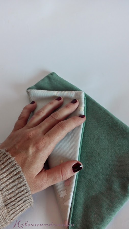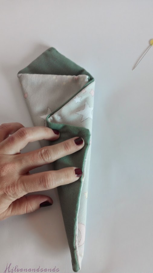 - Dobla y cose por el lateral donde están mis dedos índice y pulgar.