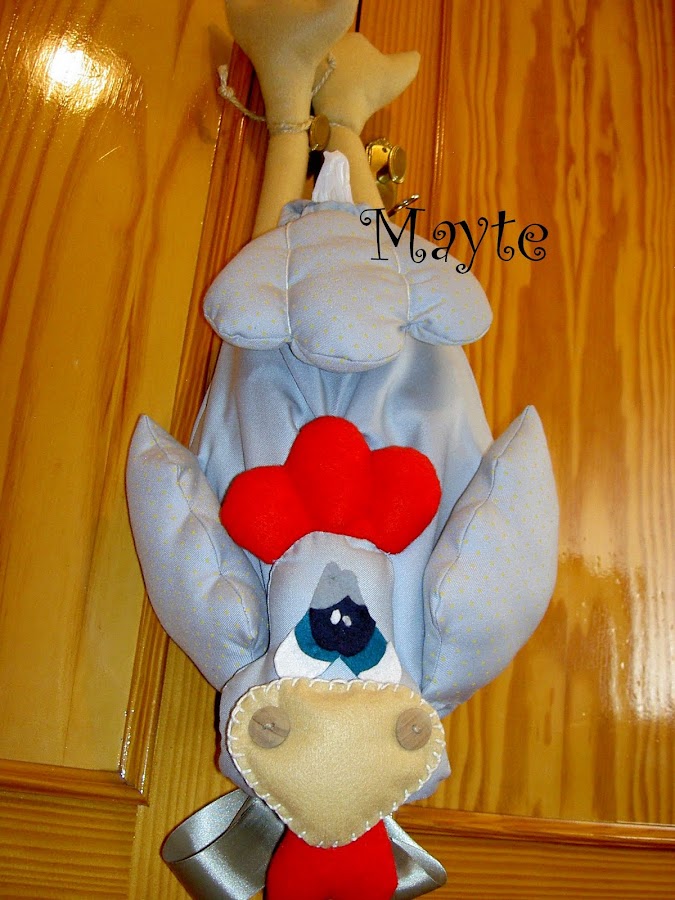 mirad lo que os enseño esta semana....un galllo guardabolsas