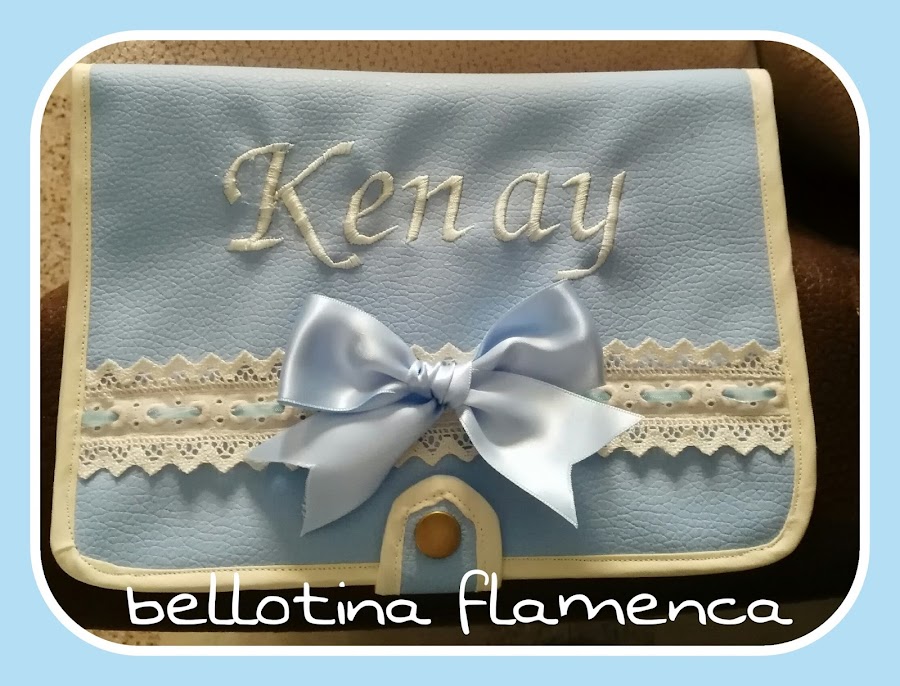 En tela color celeste con adornos en color negro y rojo. Una bonita combinación que se va para Tenerife.