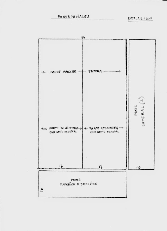 En la base superior e inferior, he hecho otra pieza doblada de 10x34 cm.(20x34 cm. para doblarla) Y la he cosido a la costura trasera por dentro, para poder meter y sacar el cartón cuando queramos lavar el guardapañales.