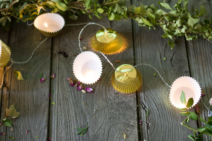 Encontré estos moldes de magdalenas en los típicos bazares que todos tenemos cerca. No lo dudé, y pensé en hacer con ellos una bonita guirnalda de luces.