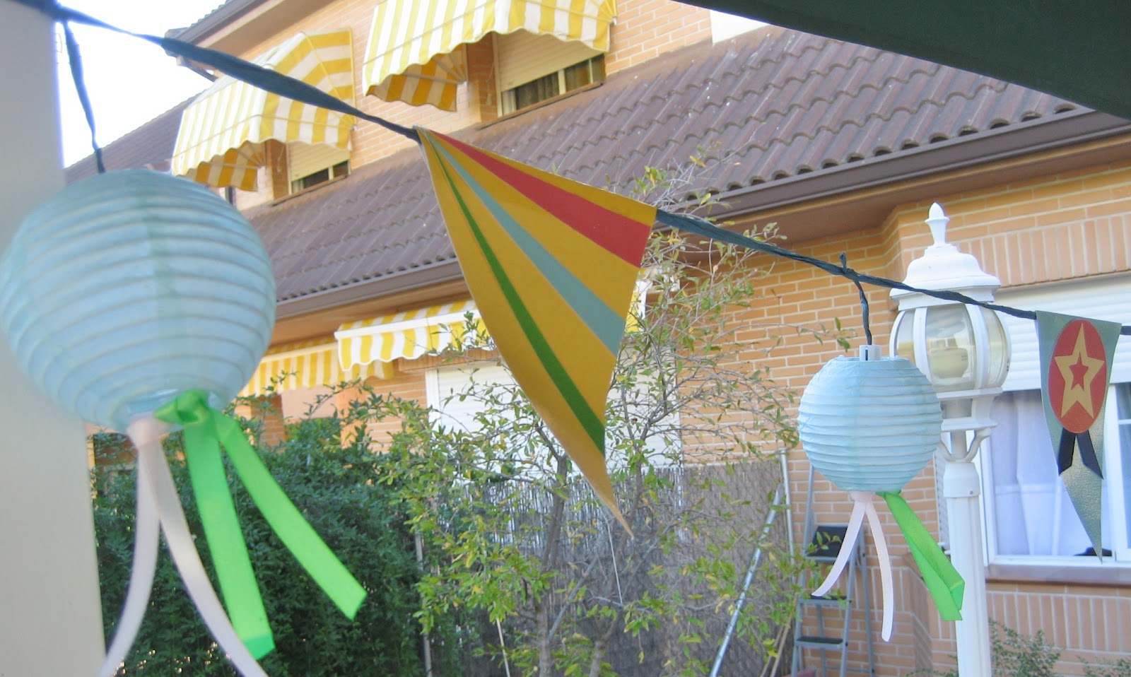 Hello everyone! I would like to share with you this colored bunting garland I made for a kid"s birthday party. It"s very easy to make, you just need colored papers, scissors, glue and some cord. I bought the japanese paper lanterns and I tied few ribbons at the bottom. Get crafty and create beautiful party decorations with your children, they will love it. I hope you"ll like it. Bye!