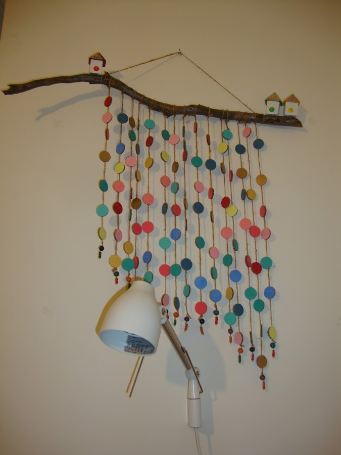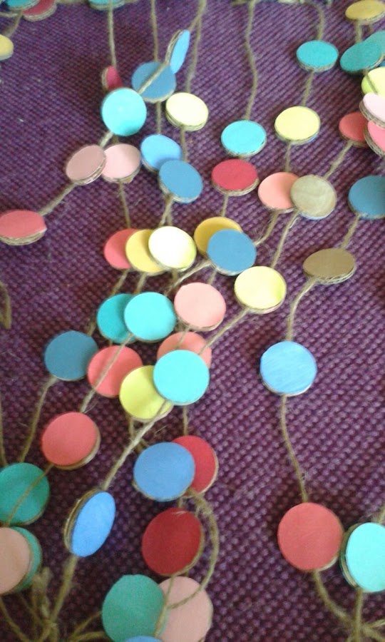 Hoy os quiero enseñar un diy que hice hace un tiempo y que la verdad no se muy bien como llamar, si guirnalda, cortina,...........hecha con círculos de cartón y ¡¡¡un palo!!!................como el anuncio famoso ;-))
