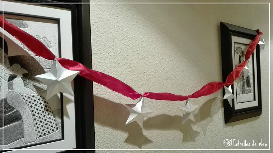Y en esta ocasión con las siete estrellas llevo realizadas, junto con una cinta roja de 2 metros he confeccionado una guirnalda preparada para la decoración de Navidad.