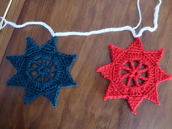 Cuando tengáis un número adecuado para la guirnalda que queráis hacer, las debéis unir unas a otras mediante un cordón de cadenetas, así...