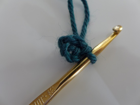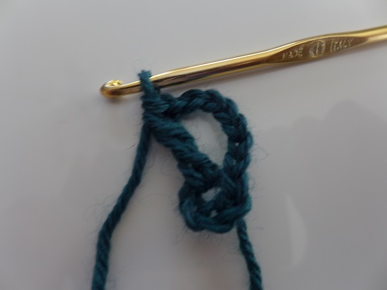 tejer 7 cadenetas (las primeras 4 cadenetas formarán el primer punto alto doble)