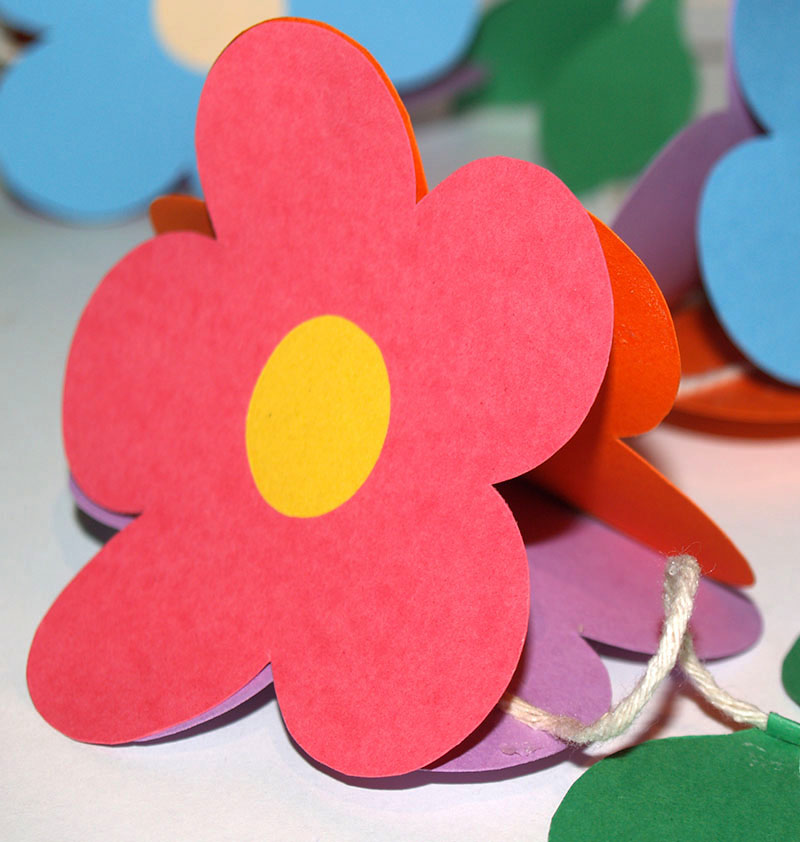 * Recorta las flores y las hojas, recuerda que deberas calcular 3 flores por cada flor de la guirnalda para que tenga el efecto 3D.