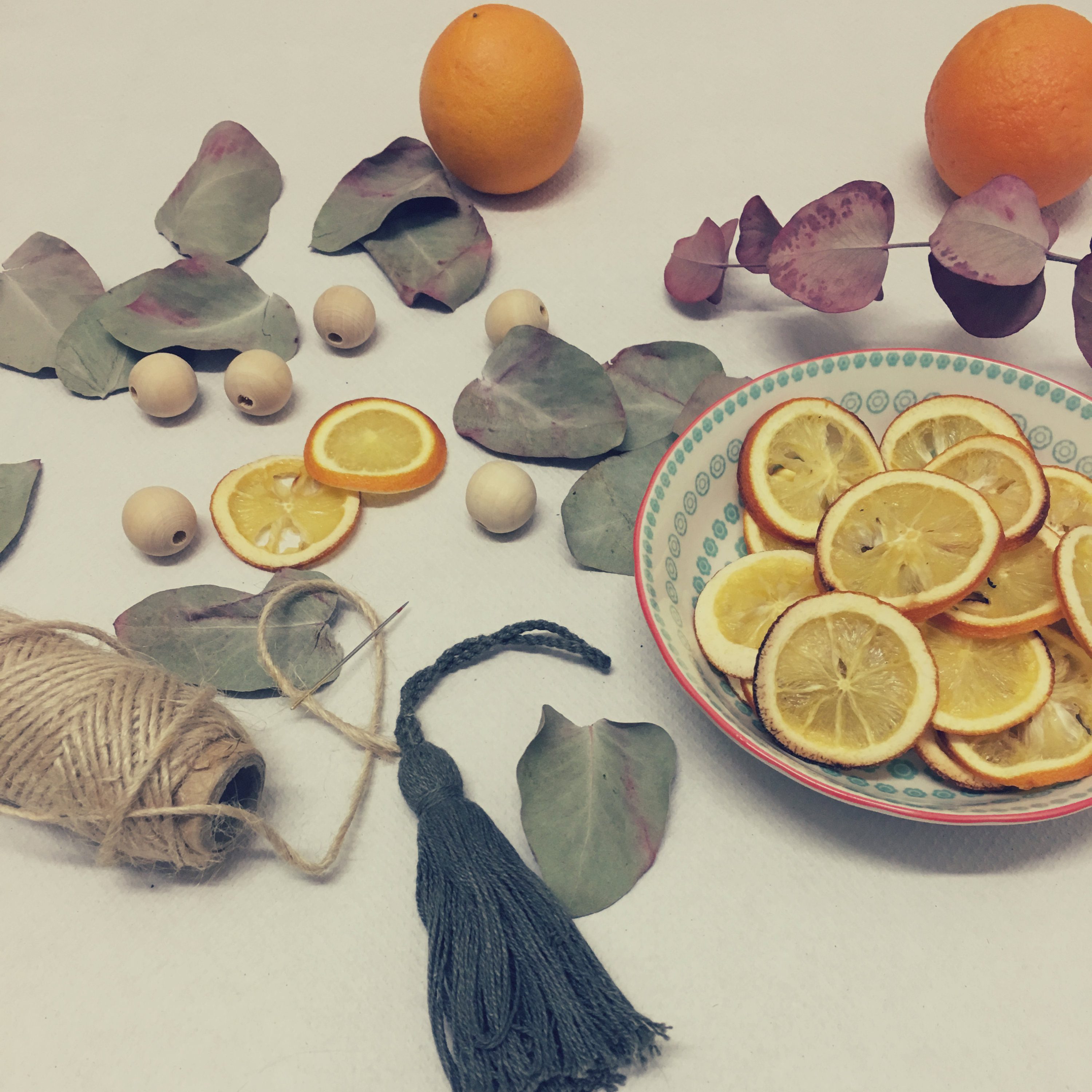 Os proponemos crear una guirnalda aromática con rodajas de naranjas y hojas de eucalipto secas. Una idea lowcost para decorar y a la vez dar un delicado y fresco aroma a nuestro hogar.