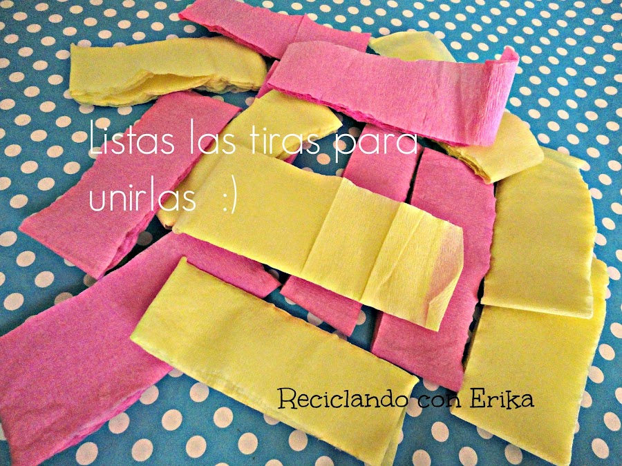 Sigues traslapando hasta terminar las tiras , si te sobra un pedazo lo recortas . Luego procedes a pegarlas para que queden bien aseguradas y no tengas pequeños accidentes el día de la reunión ;)