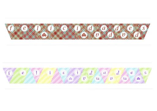 Podéis añadirle varias filas como en la foto de portada, o añadir un mensaje como en estas de abajo O simplemente de colores, cuadros, rayas, cupcakes… como éstas otras que he diseñado para vosotros ¿os gustan?