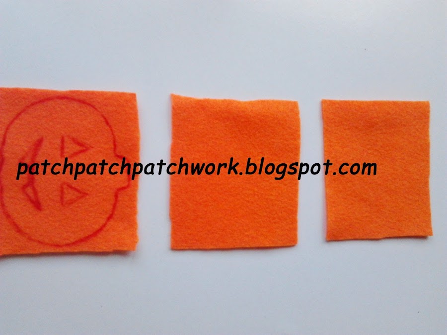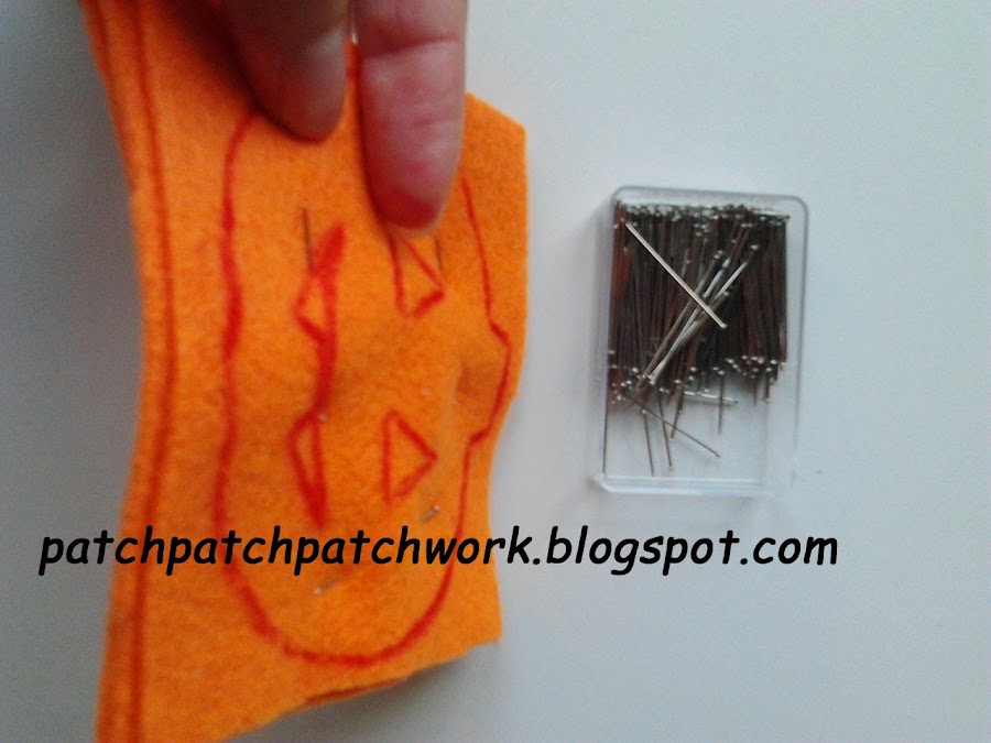 Copiaremos la calabaza en el primer cuadrado y los uniremos todos con alfileres.