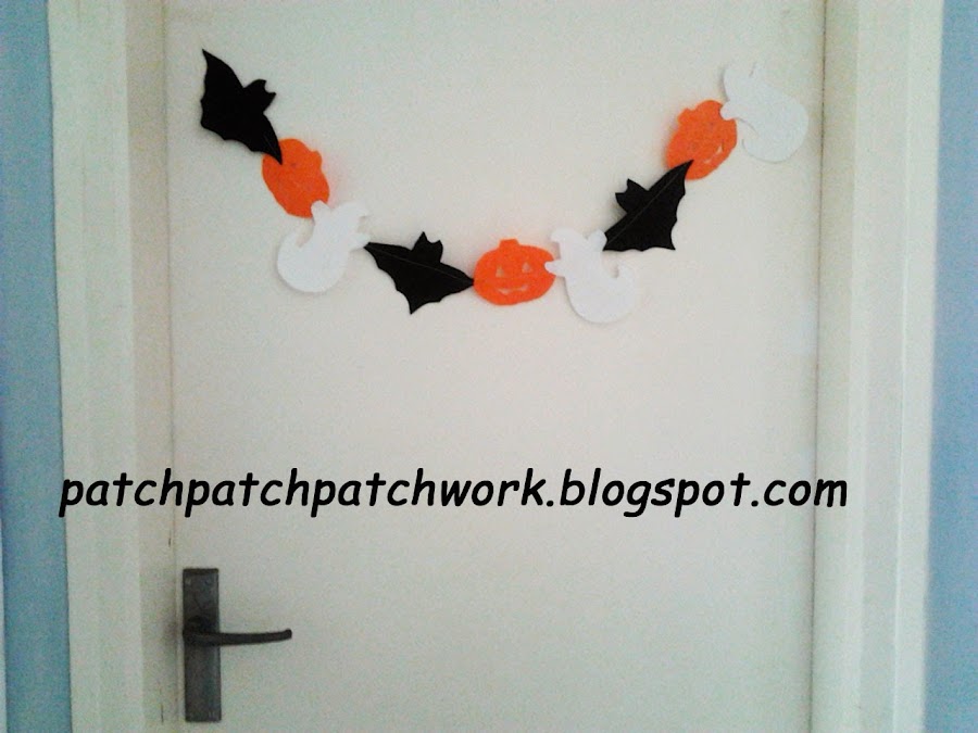 Para ese día tan especial he realizado una guirnalda de fieltro con fantasmas, murciélagos y calabazas.