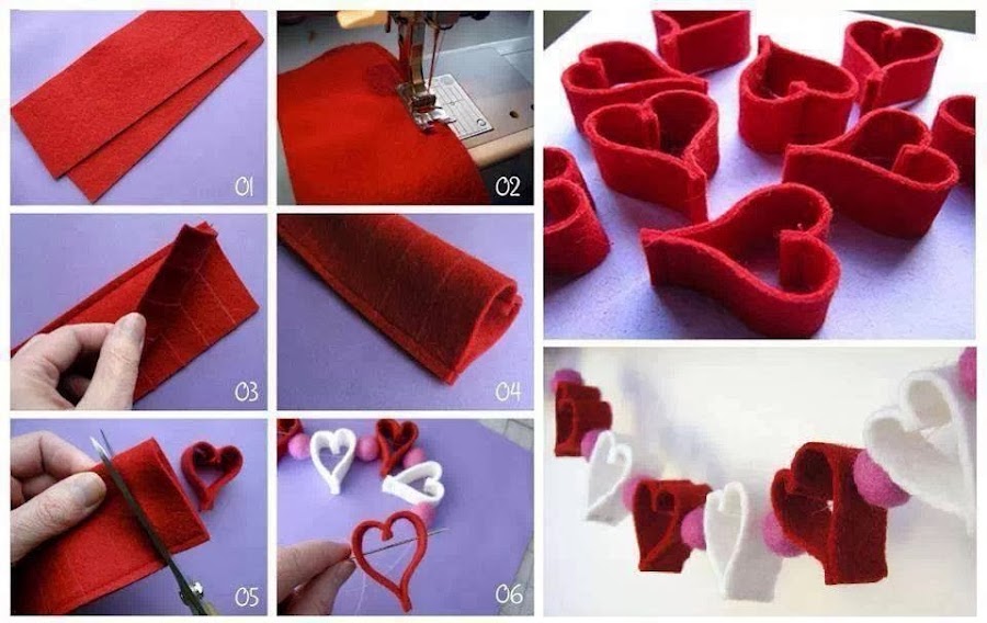 Sencillo tutorial para hacer corazones con fieltro que te servirán para distintas decoraciones en el día de San Valentín o Día de los Enamorados. hacer_corazones_con_fieltro_featured Instrucciones para hacer corazones con fieltro: – Recortar dos tiras de fieltro rectangulares – Coser uno de los lados – Voltear las tiras como si abriéramos completamente un lib ...