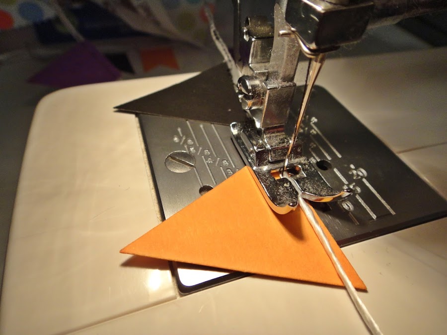 El año pasado la guirnalda de Halloween fue en fieltro, pero este año las troqueladoras nuevas han sido la mejor excusa para hacerlas en cartulina. Además, he probado una técnica nueva, cosiendo la cartulina a máquina.