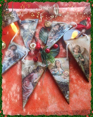 Las imágenes son restos de un papel decoupage que me había sobrado de otro trabajo.