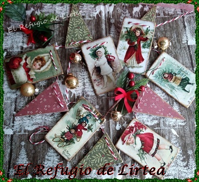 Si fuese necesario una vez seco con una lija retiráis el papel sobrante y volvéis a dar otra capa de pegamento o medium decoupage sobre él antes de aplicar el barniz protector bien mate, brillo o satinado. Yo en estos adornos he utilizado barniz brillo.