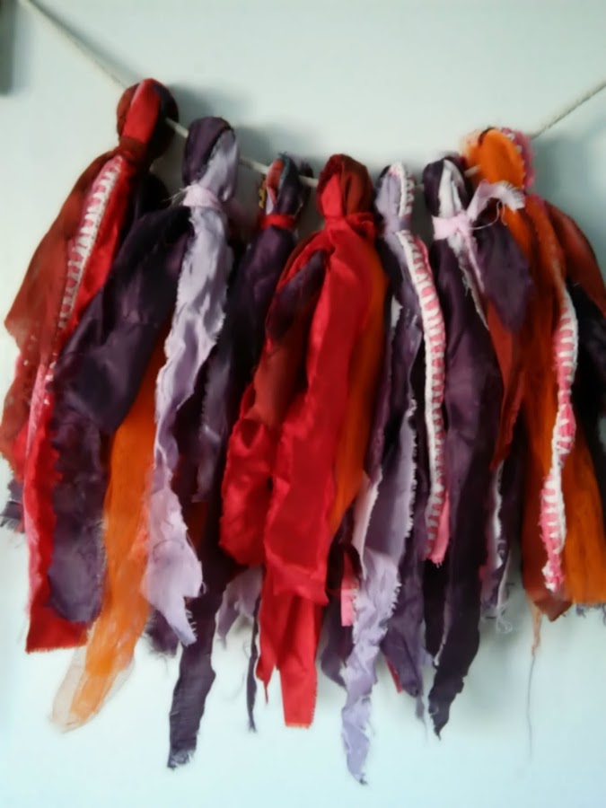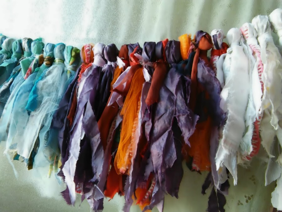 Una buena idea sería intercalar lucecitas entre cada borla de tela para darle un aire más navideño.