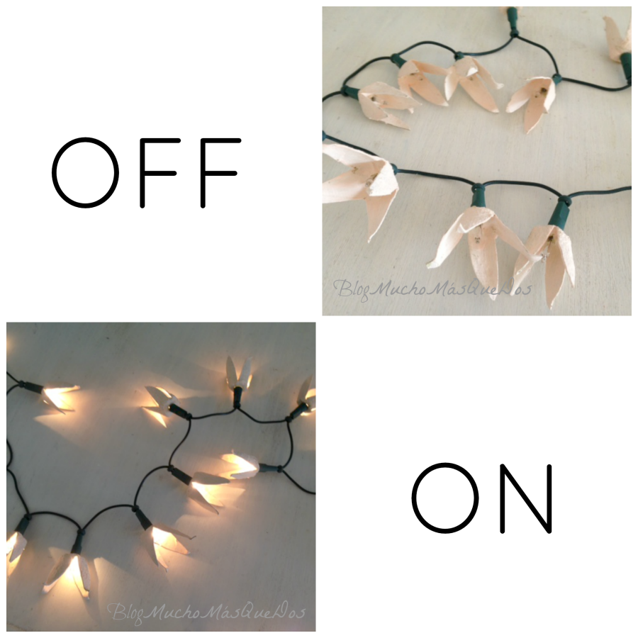 Perforas con cuidado y colocas cada flor en cada luz... ¡Y Listo!