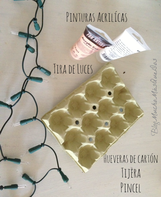 Ahora verás cómo realizar de forma sencilla una guirnalda de flores luminosas con la misma técnica de reciclaje de hueveras.