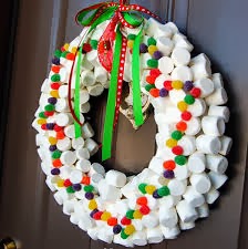 4º Guirnalda de dulces: Muy apropiada para familias con niños, aunque no se yo si durara todo el periodo de navidad jajajjaj en este caso los dulces se pegan al corcho con palillos pequeños.