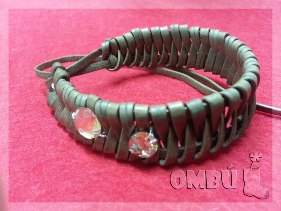 Pulsera Glam: Piel y Swarovski Detalle Piluko Músico