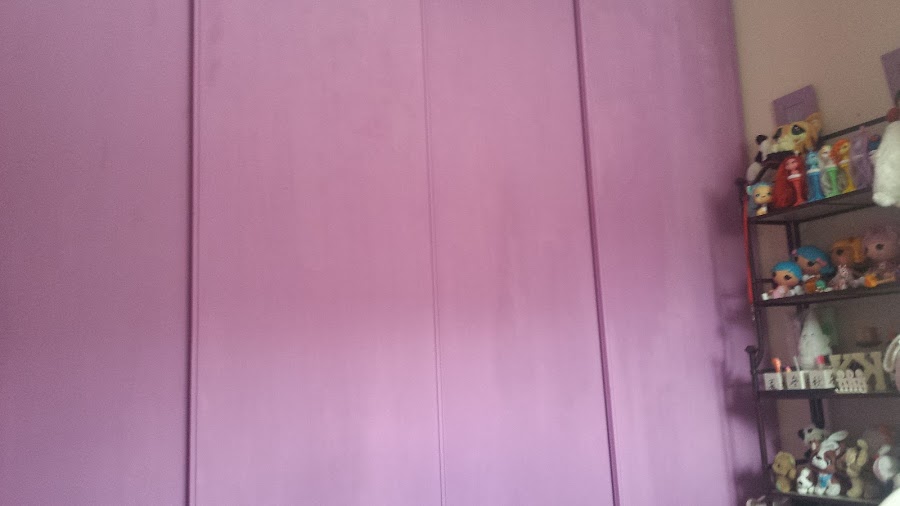 Hace unos años pinté su armario empotrado de blanco, antes era de chapa metálica con laminado imitando pino y nunca me habían gustado. Ya tiene 9 años y dice que su habitación le resulta muy infantil así que nos proponemos darle un cambio. Hemos empezado por aquí.