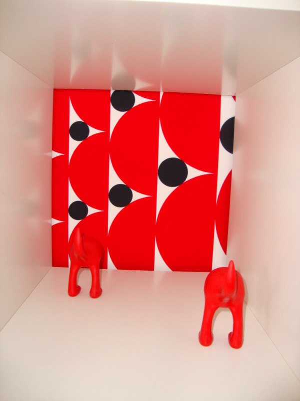 Para el fondo de las expedit he colocado una tela que estará presente en toda la habitación, como por ejemplo, en la cómoda