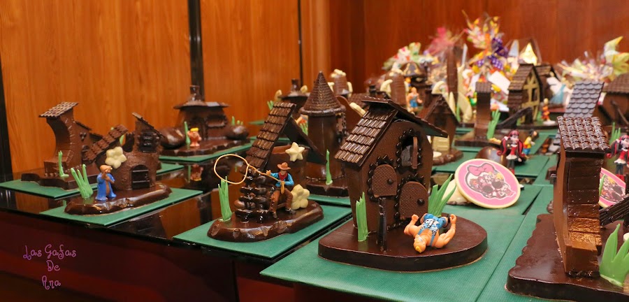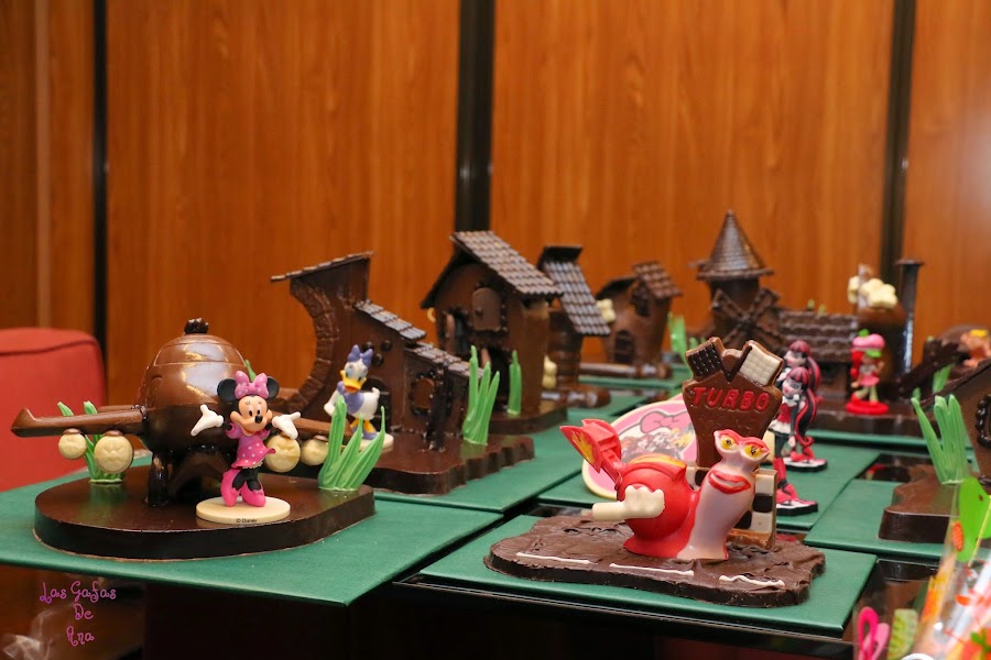 Aquí traigo algunas fotografías de estos pecaditos en miniatura, casitas de chocolate adornadas de personajes de Disney como la sirenita, minni mouse y turbo (para los más jóvenes).