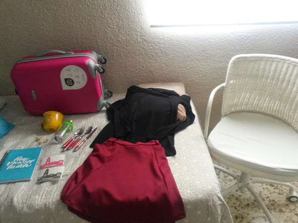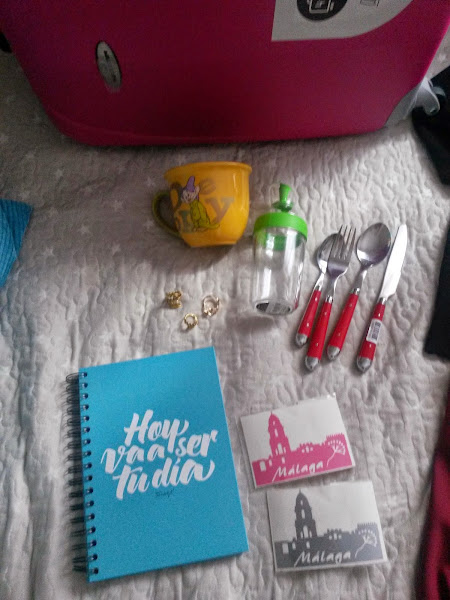 Dos pegatinas para el coche, accesorios para cuando como en el trabajo y una maleta preciosa =)