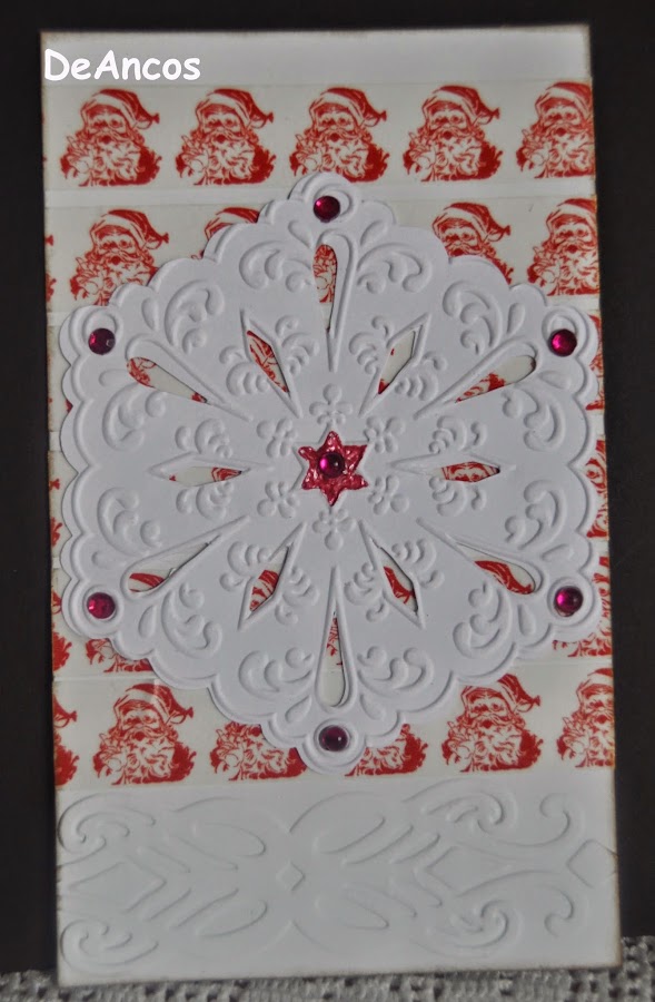 Como estoy metida en el mundo de la temática navideña en estos momentos, me ha salido esta tarjeta con emboss, washitape y troquelado.