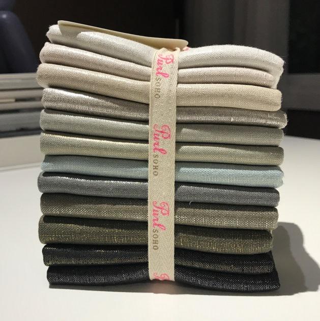 Algunas telas que son 100% algodón pueden tener distintas texturas, como estas de Purl Soho que tienen brillo.