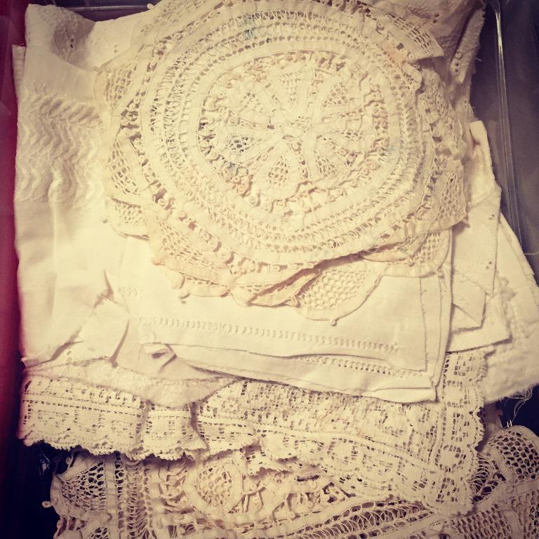 Las antiguas telas de hilo son ideales para el bordado a mano y el collage.