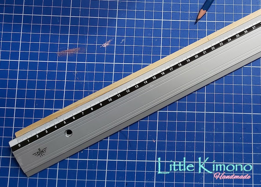 3. Una vez cortadas todas las piezas, en uno de los extremos de cada listón (sólo en las piezas de 22cm lo haremos en ambos extremos) vamos a sobreponer otro listón y marcar el ancho con un lápiz, una vez hecho esto haremos una "X" en medio, en el punto central haremos los agujeros para pasar los tornillos como muestran las imágenes.
