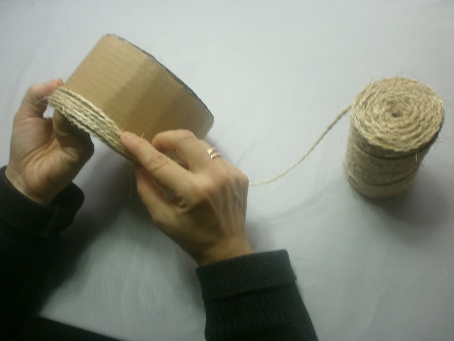 Se pega cuerda en el borde para seguir rodeando toda la caja.