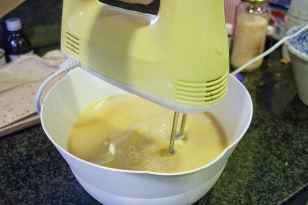 Ahora llega el momento de la batidora. Se puede hacer con un minipímer, con unas varillas o incluso con la Thermomix. Con mucha paciencia, porque tarda un rato, batid la mezcla. Es importante que lo hagáis siempre a la misma velocidad y con los mismos movimientos, porque el jabón se puede cortar igual que una mayonesa.