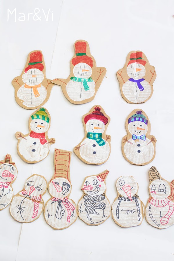 Esta vez decidimos hacer una manualidad de Navidad para decorar la casa y nos decantamos por una guirnalda de muñecos de nieve.