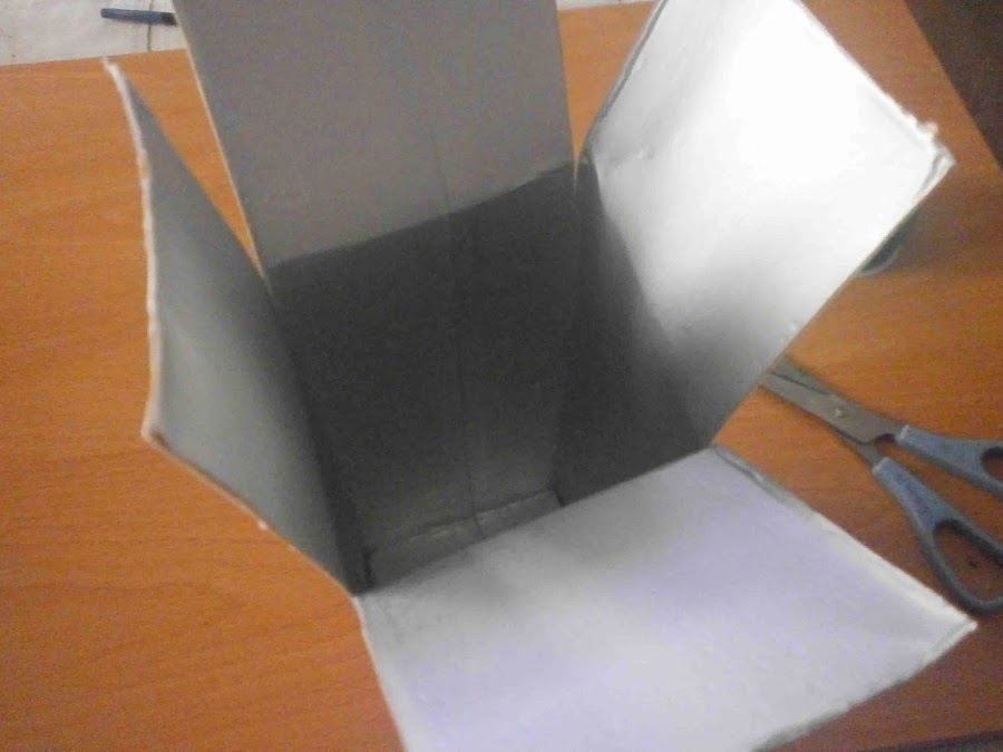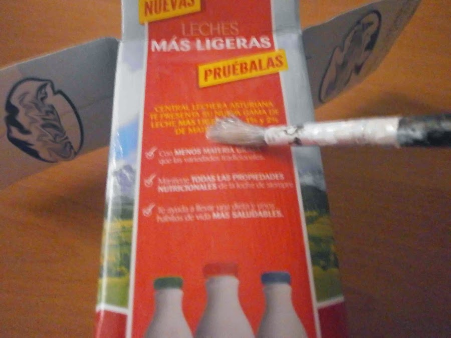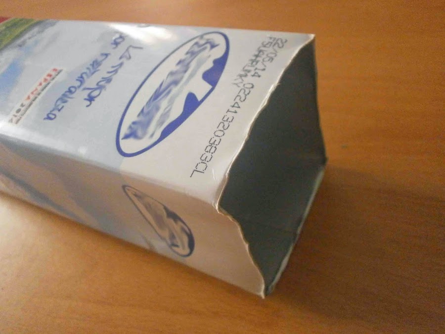 Después de lavar bien el cartón de leche, lo recorte por la parte de arriba.