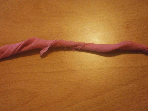 Primero retorcí la tira de tela, la sujete por un extremo para que no se me deshiciera.