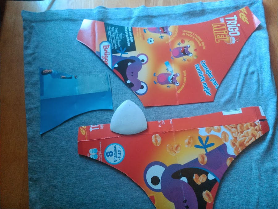 Hacemos un patrón de una braguita que mejor os quede, marcamos en la tela y cortamos.