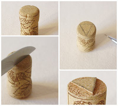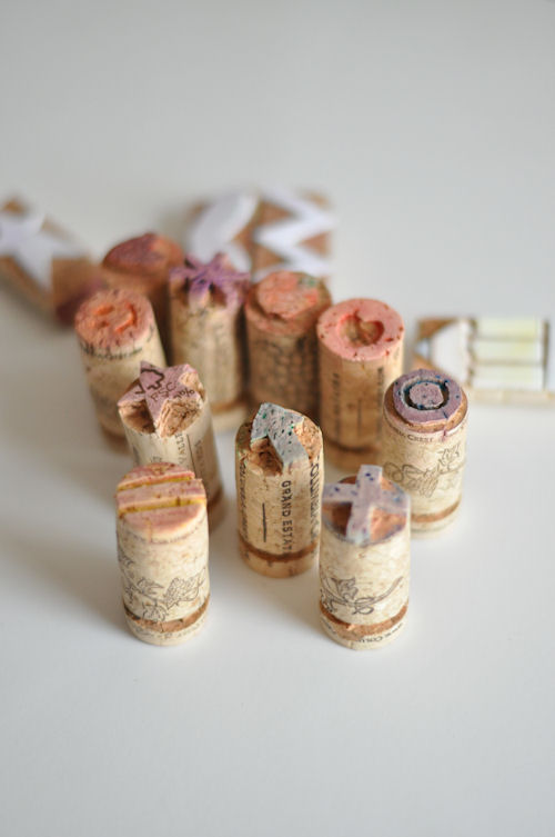 Pero otra forma de hacerlo es cortando el corcho por la mitad o vaciando lo que es la forma y dejando el fondo, de esta manera crearás un sello circular con hueco en el centro, igual que en los corazones de la siguiente foto de www.guiademanualidades.com .