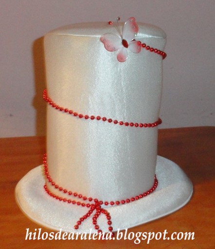 No piensen que tuve un ataque de rojiblanquitis . He hecho muchísimos sombreros en distintos colores . Los de la "colección" rojo y blanco son del casamiento de mi hija , que es fanática del color rojo ( el blanco era para cortar un poco) y eligió toooooodo ( mantelería , cotillón, centros de mesa, tarjetas, toooodo !) en ese color
