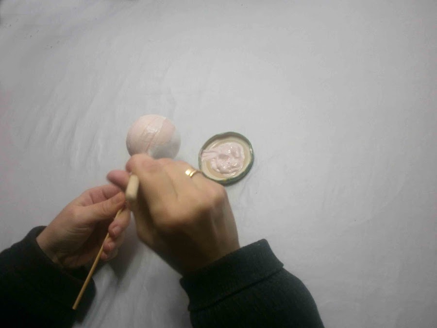 Con el mismo palo de brocheta se le hace un agujero más grande para ponerle silicona y pegar la cabeza.