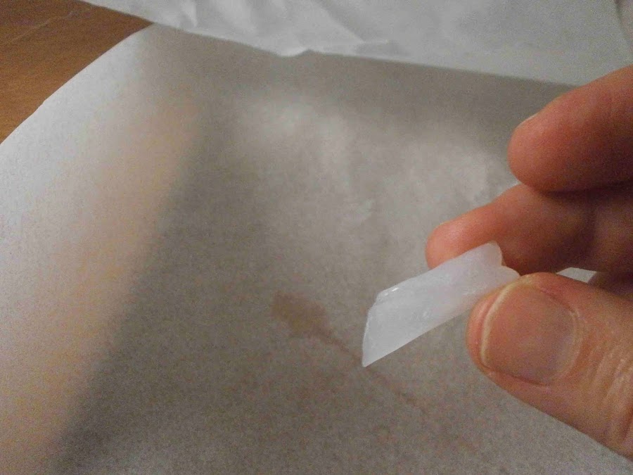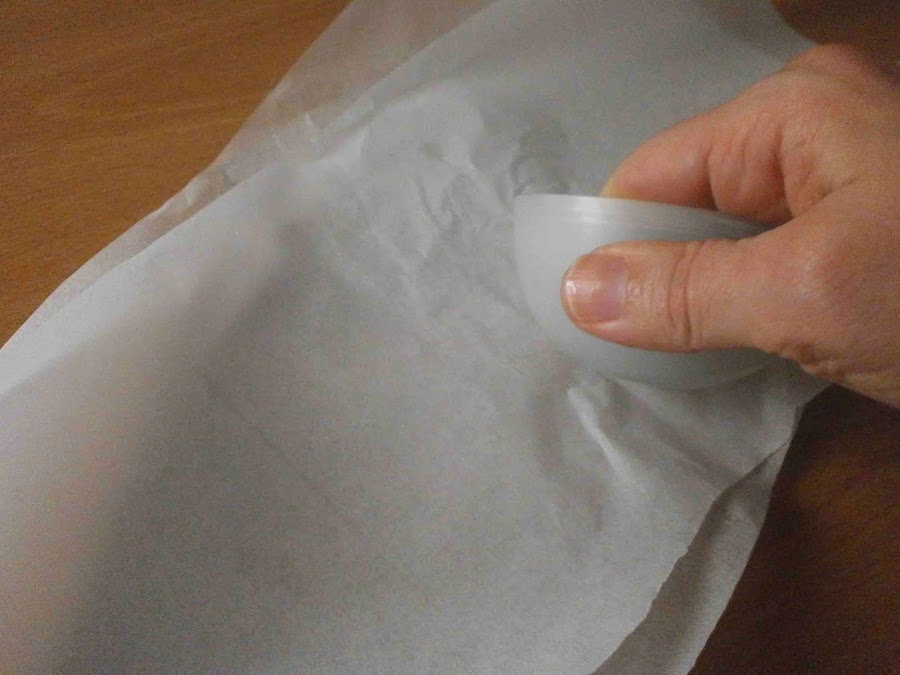 Y rápidamente puse la otra parte de papel encima y comencé a aplastar la silicona con el utensilio redondo.