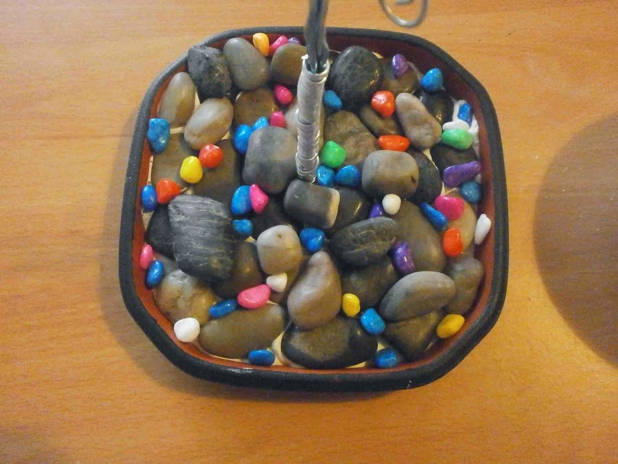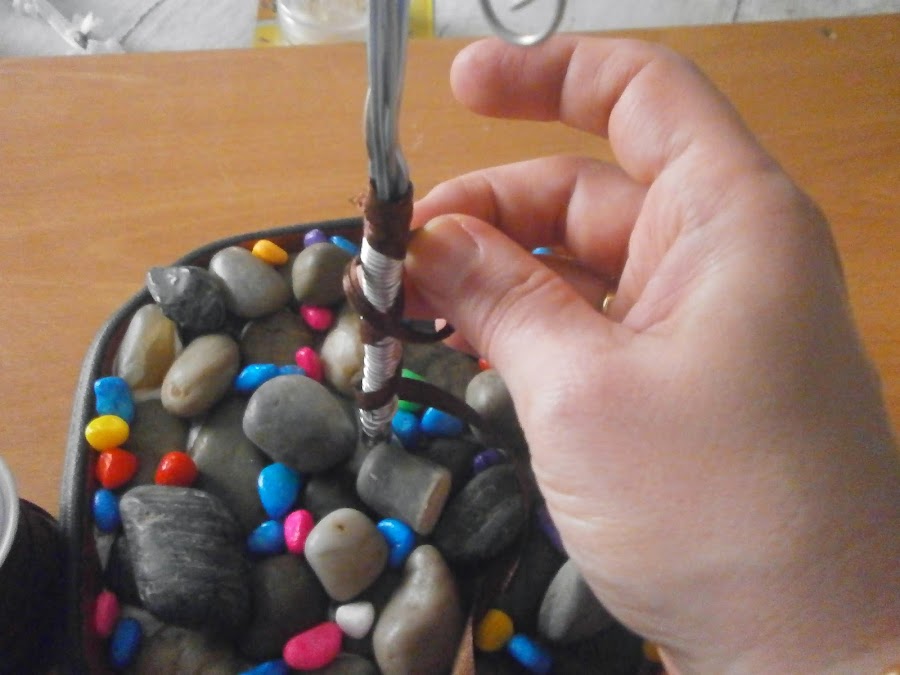 Para darle mayor firmeza al tallo le volví a pasar alrededor otra vez de arriba abajo alambre.