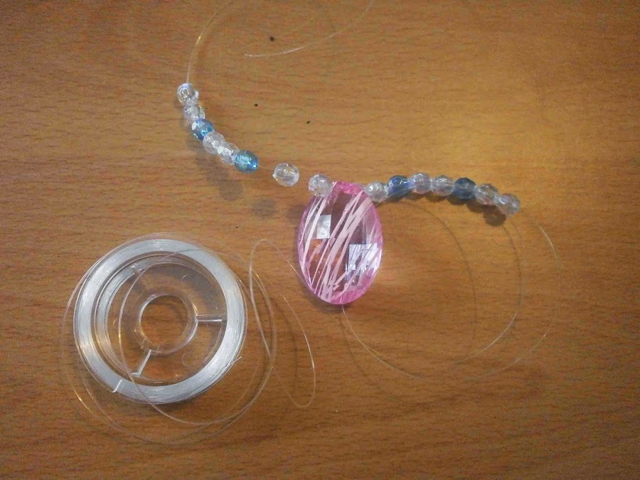 Con el hilo de nylon puse unos abalorios y anudé, hice tres.