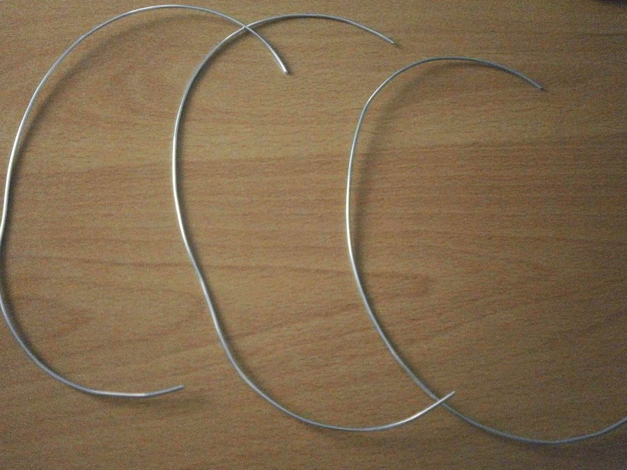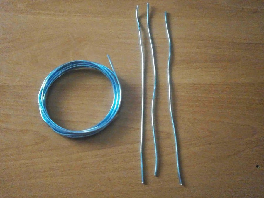 Ahora con el alambre de aluminio azul corté tres piezas.