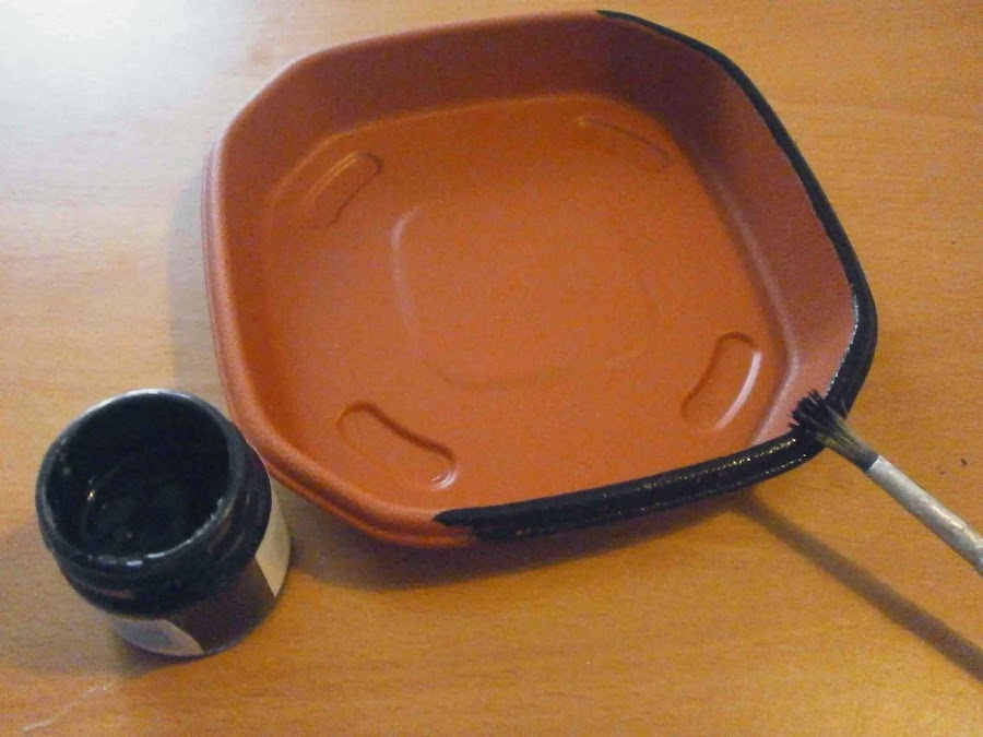 Como mi plato de maceta era marrón y no me gustaba mucho lo pinté de negro por la parte de afuera.