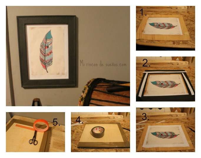 Los materiales son orientativos, , ya que si tenéis el marco completo con poner la lámina de la misma medida, ya estaría como hice aquí.